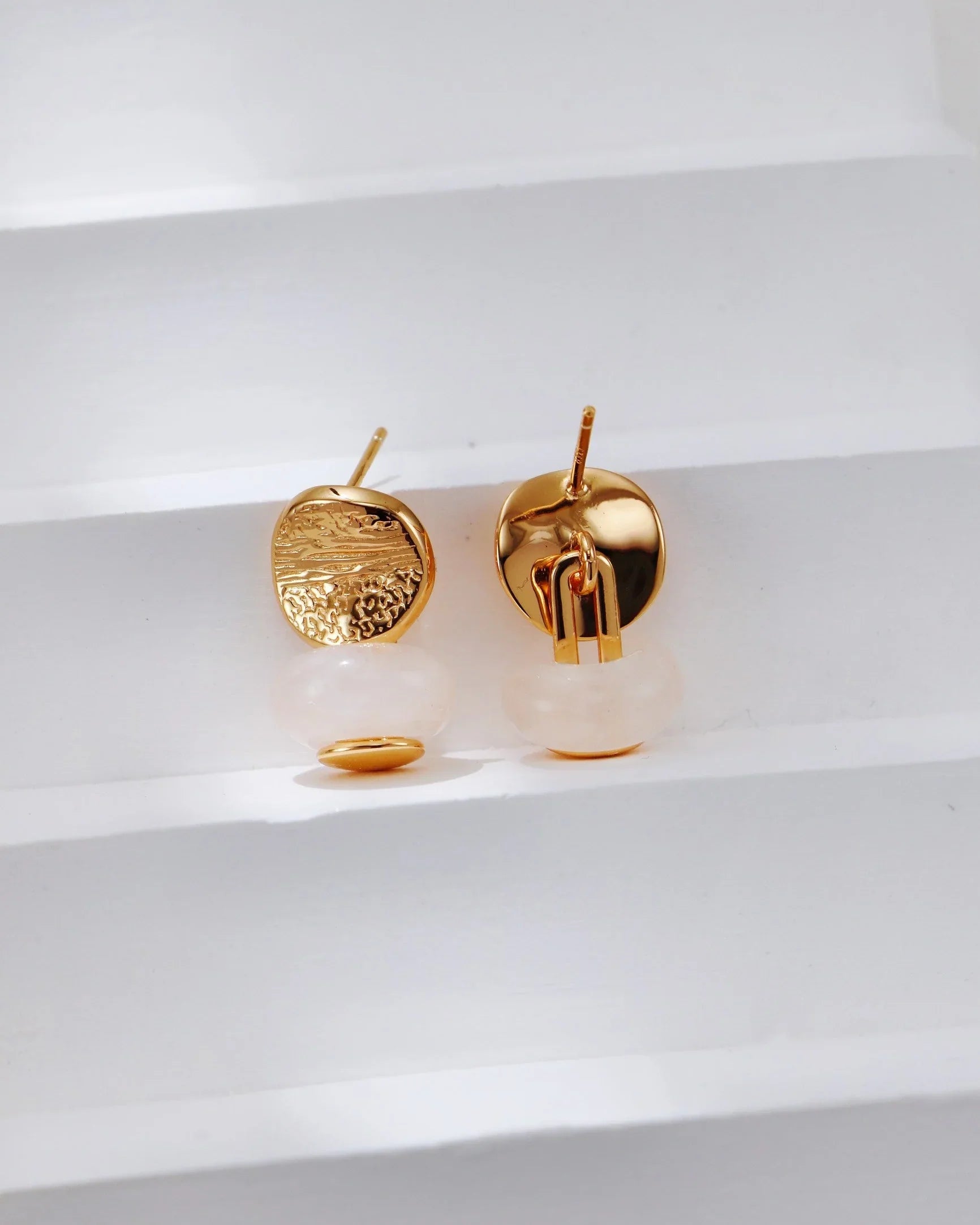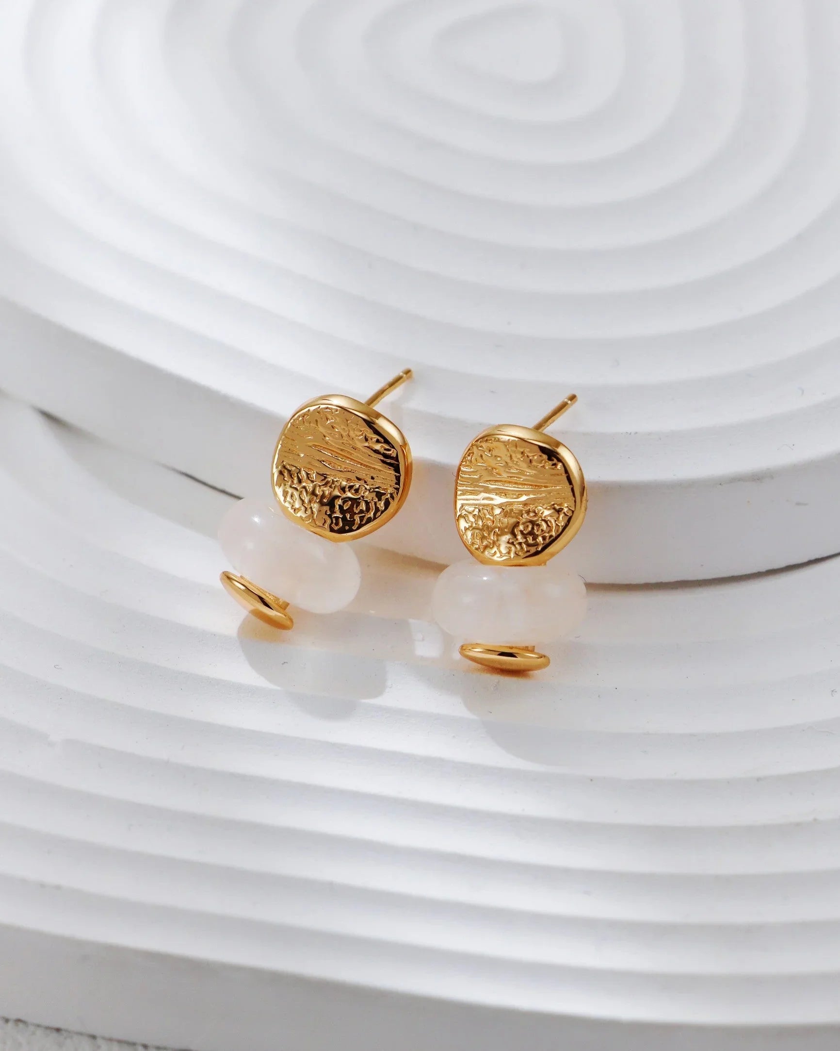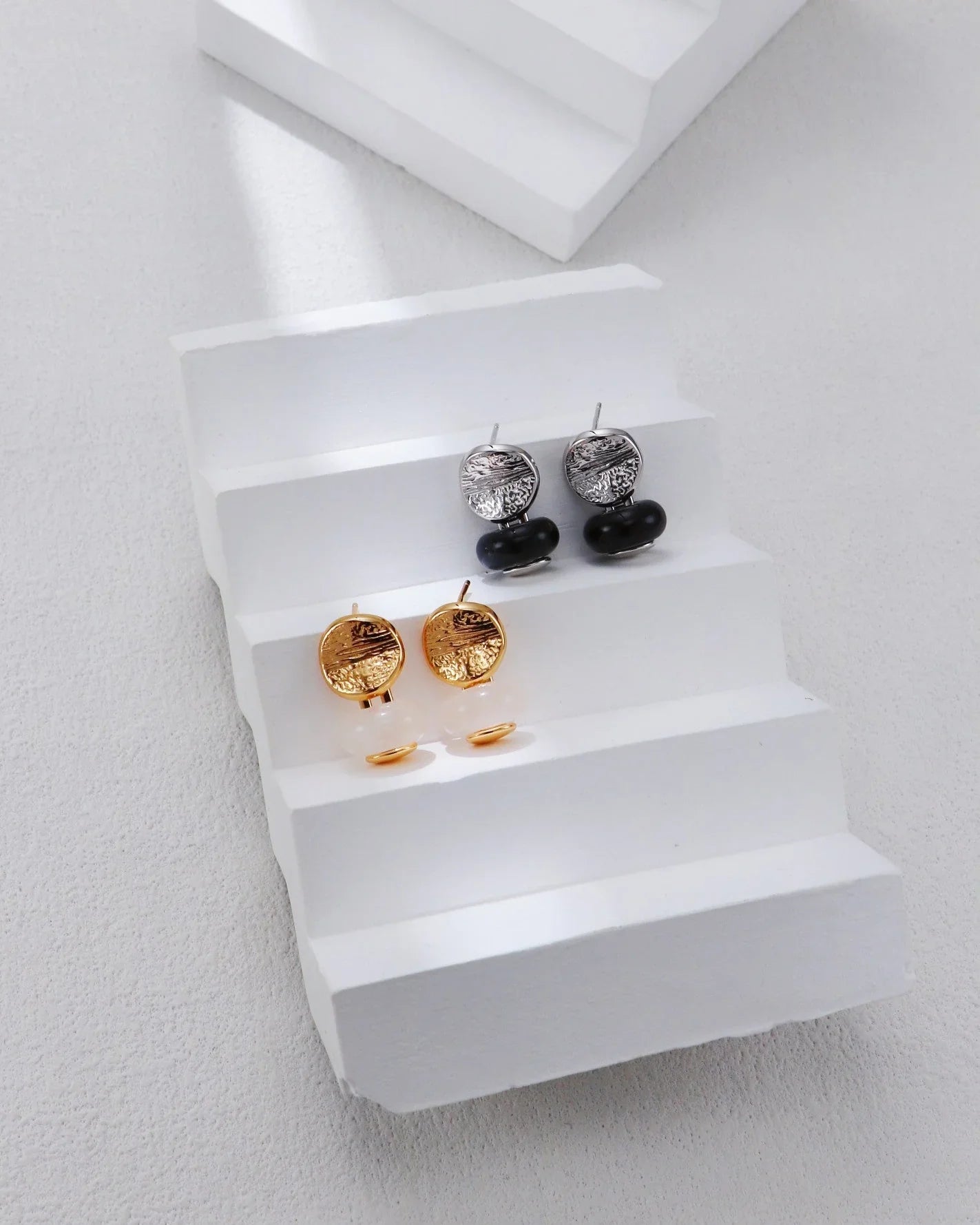 Med en teksturert overflate kombinert med klar kvarts og svart onyks, kombinerer disse øredobbene enkelhet med moderne stil. Det unike designet tilfører individualitet og eleganse, noe som gjør dem til et perfekt valg for å uttrykke personlig sjarm.