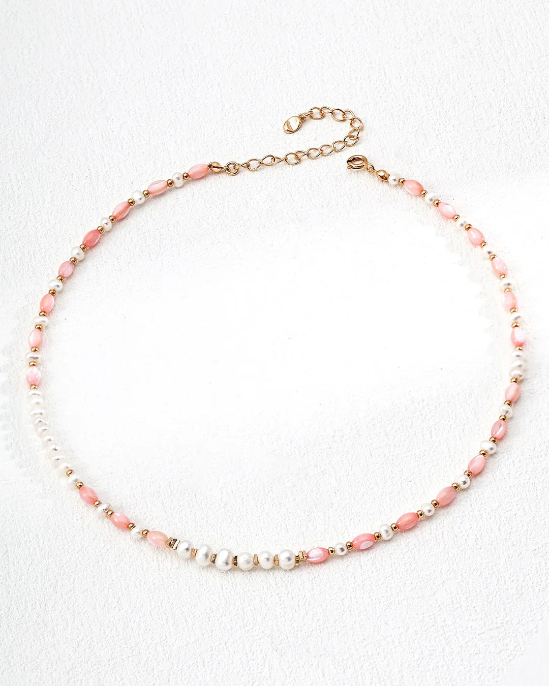 Rosé-skjellperlekjedet er et tidløst symbol på ømhet og hengivenhet. Rosa skjell reflekterer ren kjærlighet og romantiske følelser, mens perler representerer dyrebar skjønnhet og evig hengivenhet. Sammen skaper de et kjede som er mer enn bare smykker – det er et inderlig uttrykk for omsorg og mening.