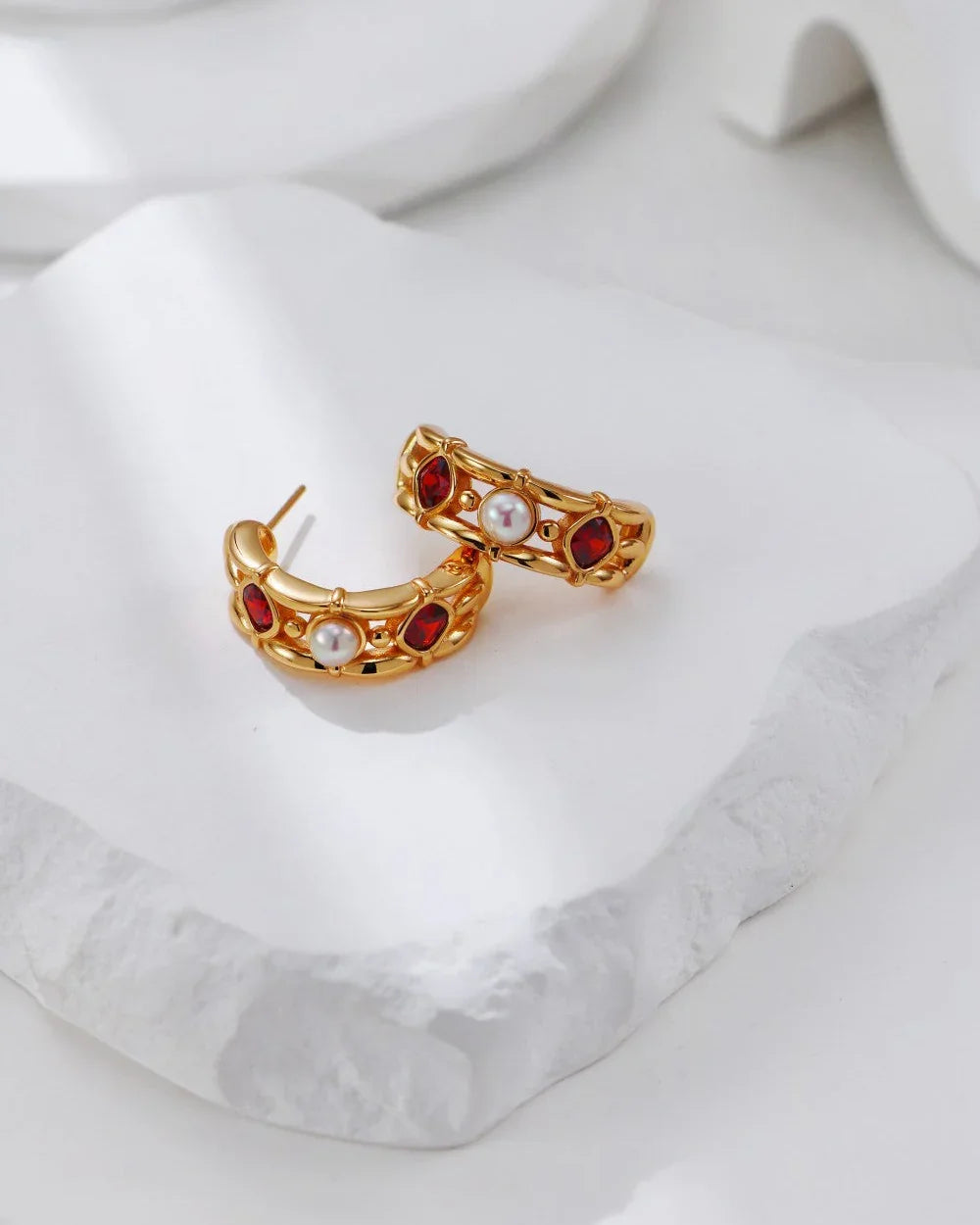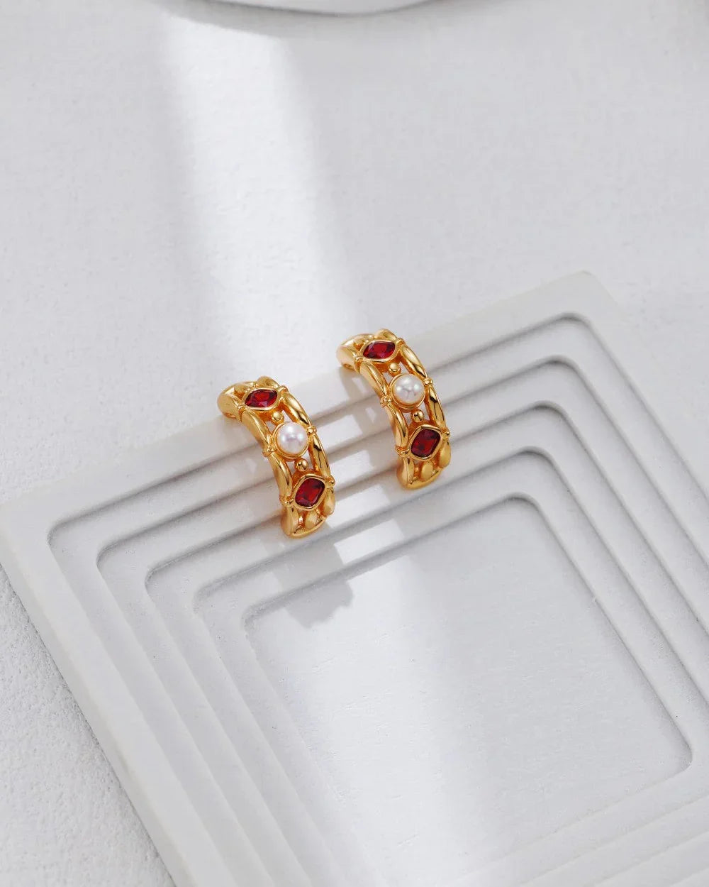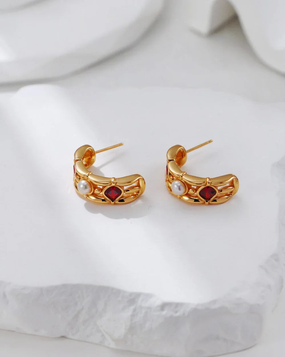 Disse øredobbene er laget med presisjon og har glatte, buede metallkonturer som flyter med eleganse. Den polerte gullfinishen setter en luksuriøs tone som fremhever det raffinerte håndverket og den tidløse sofistikasjonen. Disse øredobbene er en perfekt balanse mellom moderne design og klassisk sjarm, og representerer både ynde og storhet.