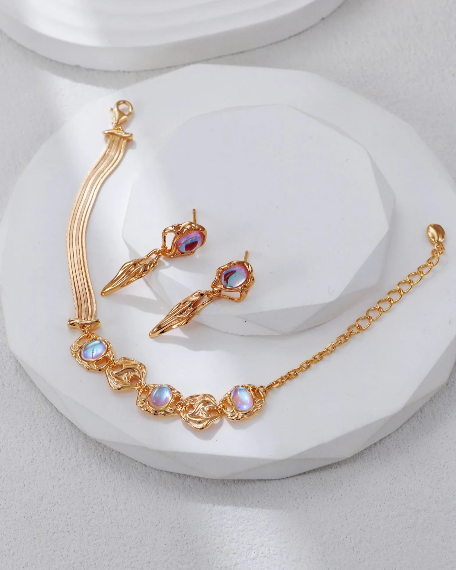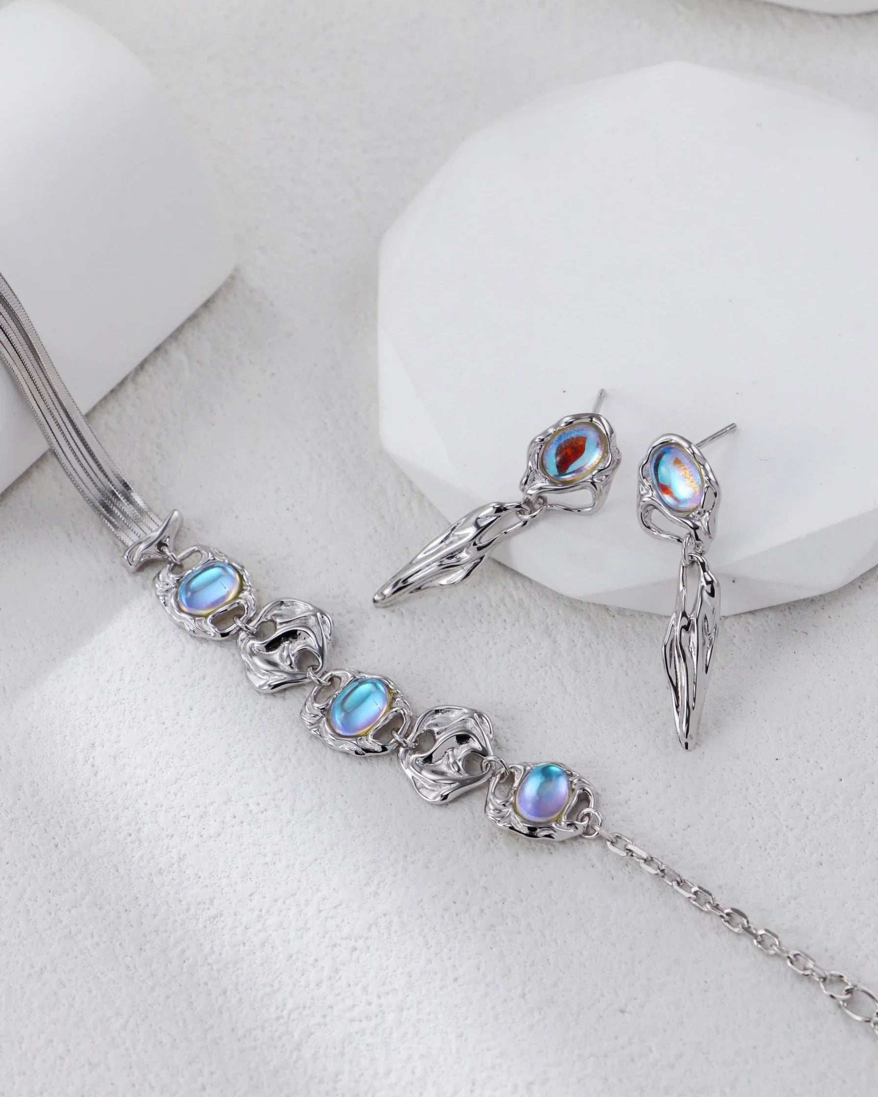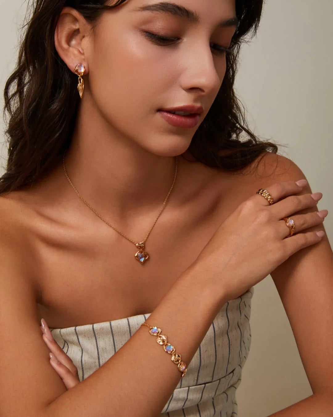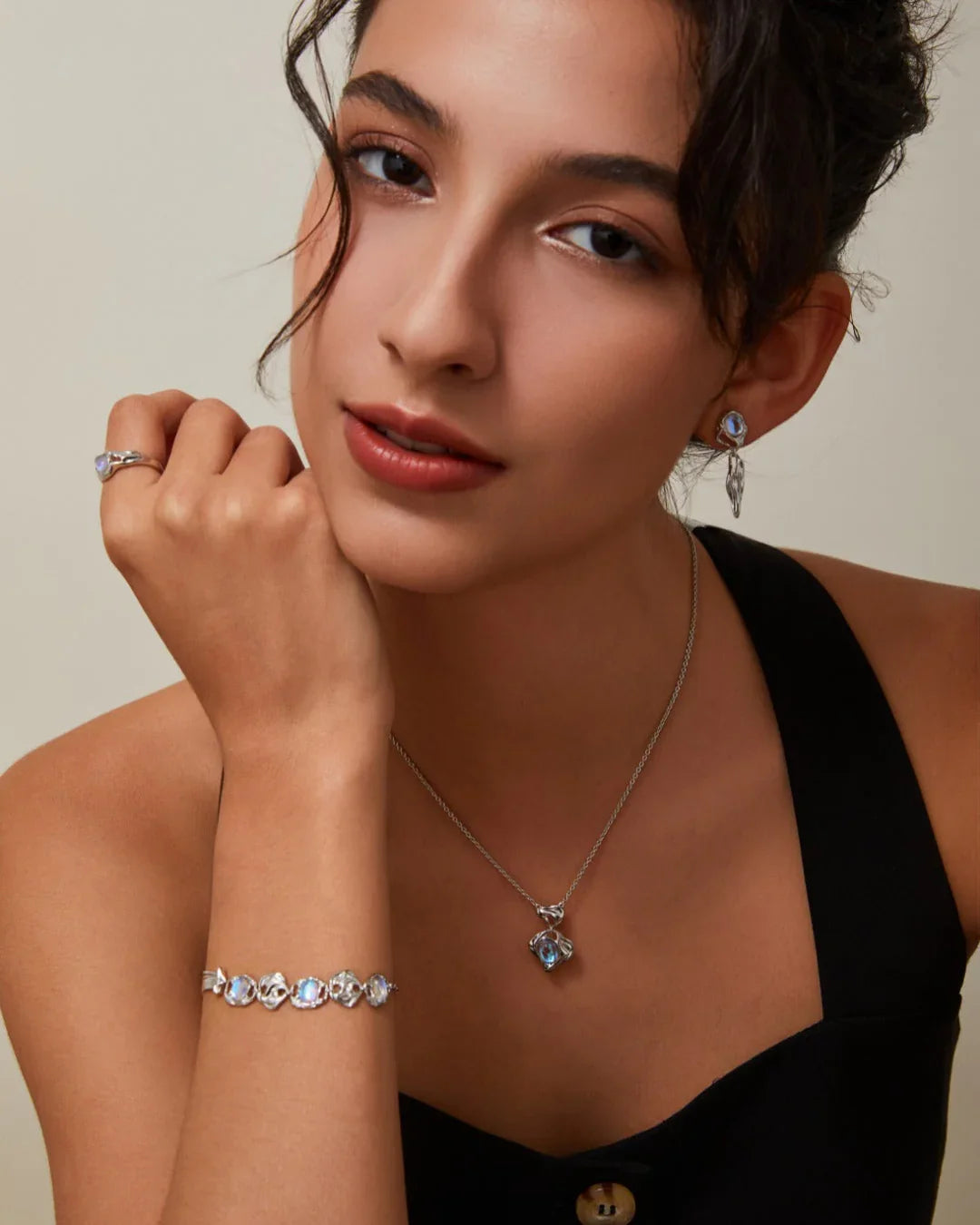 The Moonlit Dreams Sets brings together four timeless designs—necklace, earrings, bracelet, and ring—each crafted to highlight the ethereal beauty of moonstone.